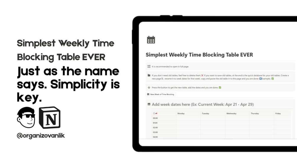 You'll get: Simplest Weekly Time Blocking Table EVER