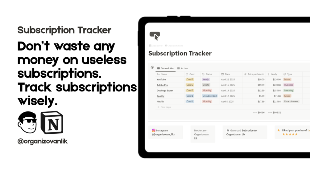 Follow your Subscriptions with this straight to the point Subscription Tracker. Don't waste money on unimportant subscriptions